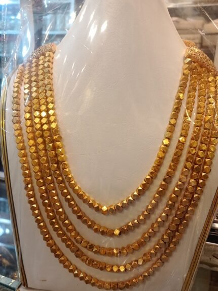 Traditional Triple Strand Geometric Bead Necklace for Bridal Wear | 24k Gold Plated