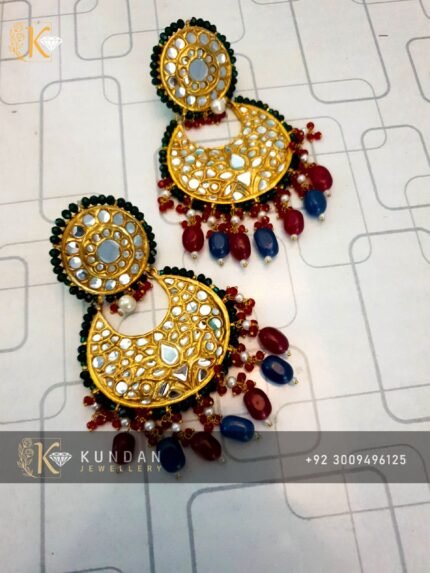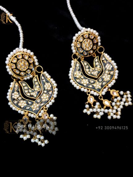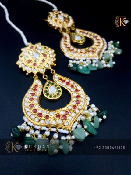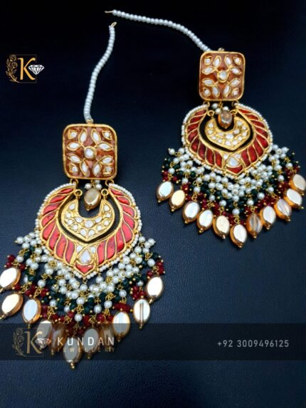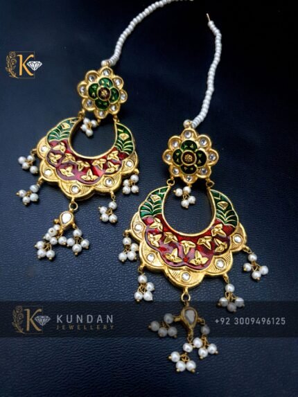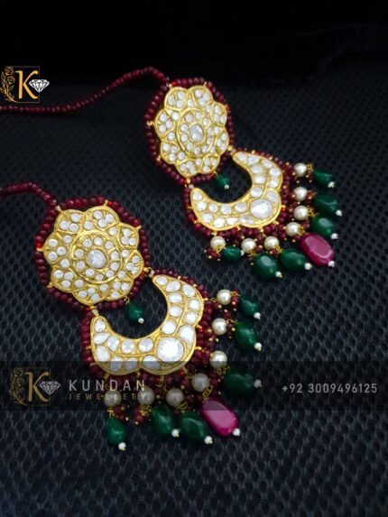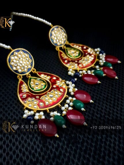 Elevate your style with our Ishq Murshad Inspired Earrings, as worn by Dur-e-Fishan. Crafted with precision and featuring a captivating blend of green stones and magenta, meena kari they exude timeless elegance and are available worldwide.