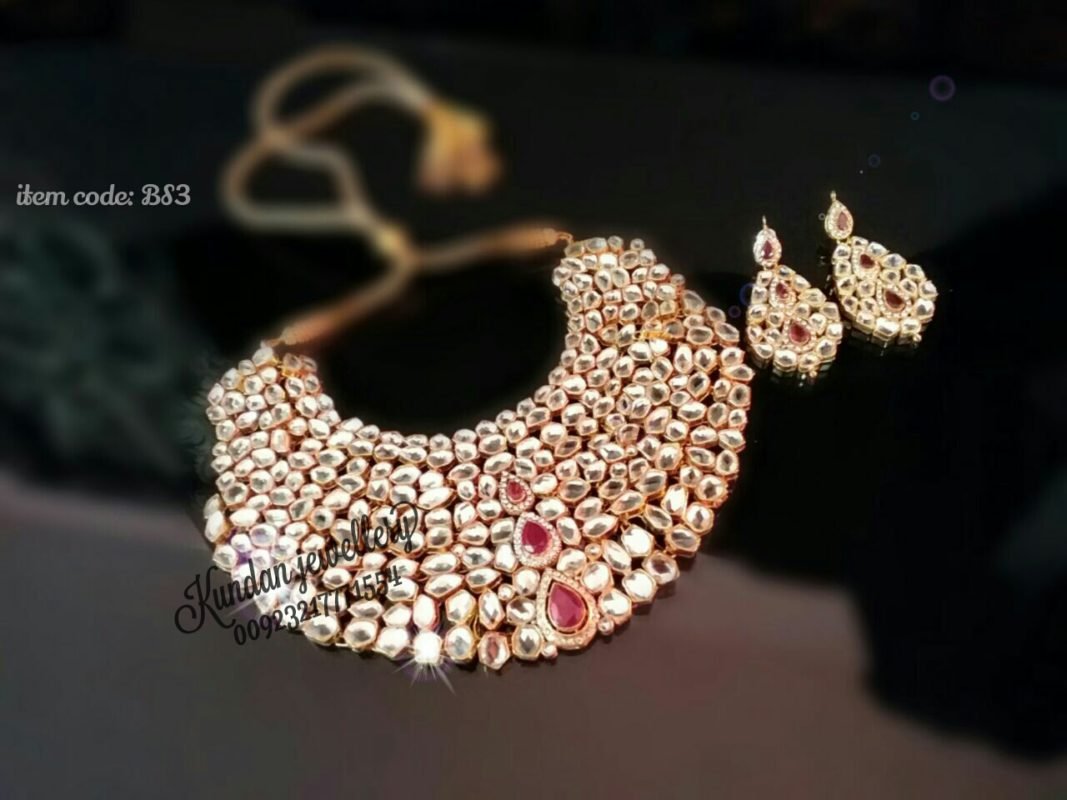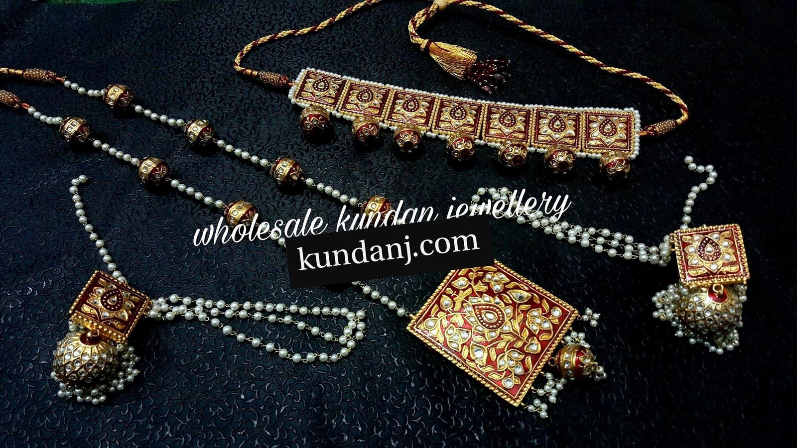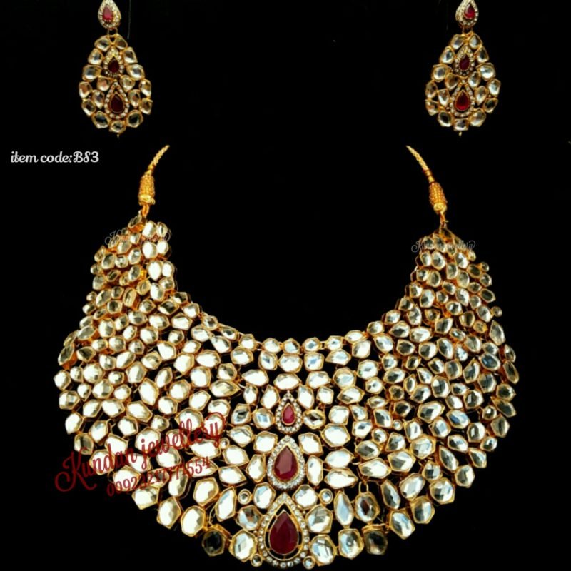 22K Gold Plated Kundan Har and Choker Set studded with Pearls and Kundan Sheesh.