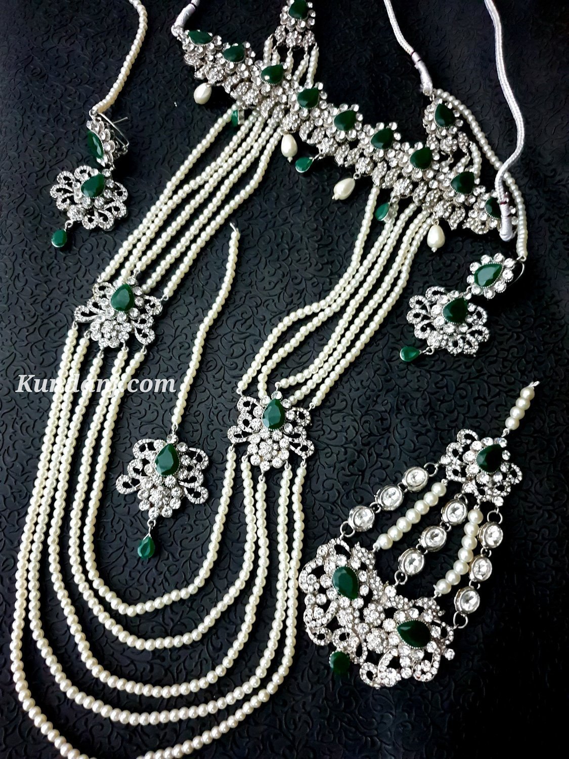 22K Gold Plated Kundan Har and Choker Set studded with Pearls and Kundan Sheesh.