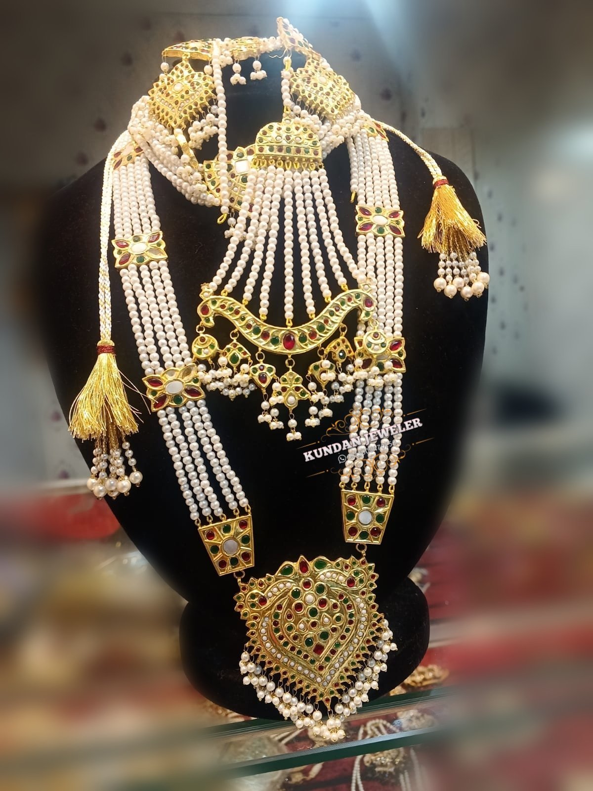 22K Gold Plated Kundan Har and Choker Set studded with Pearls and Kundan Sheesh.