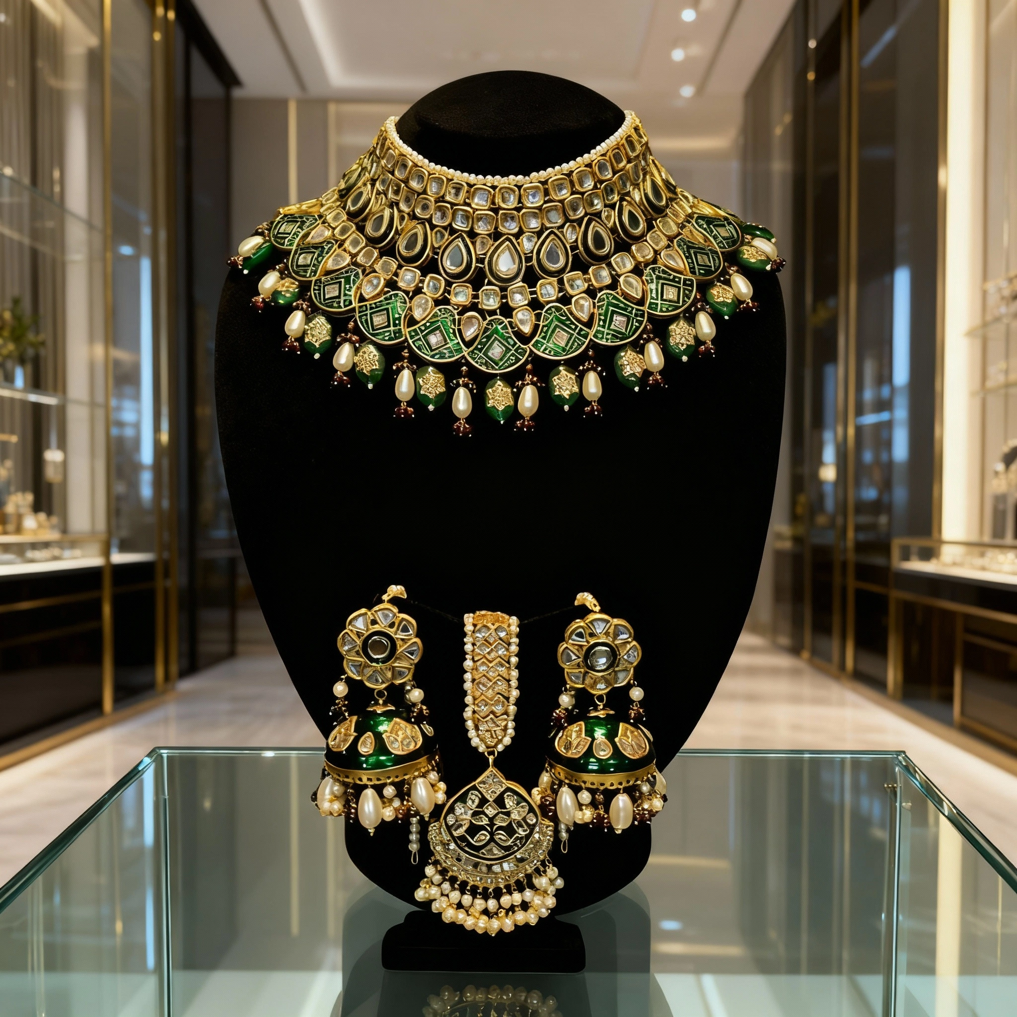 Emerald Pearl Kundan Royal Bridal Choker Set