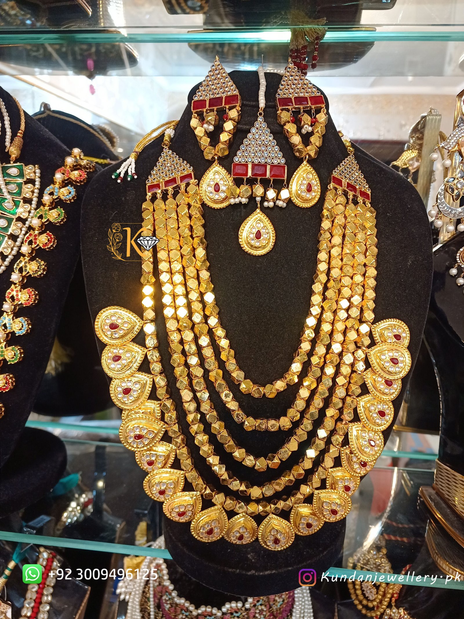 Our artisans ensure each piece is polished to perfection, giving a real gold look that even experts cannot distinguish until informed. This set is designed for brides, mehndi/mayun events, photoshoots, and high-end traditional styling — offering a luxury appearance at an accessible price.